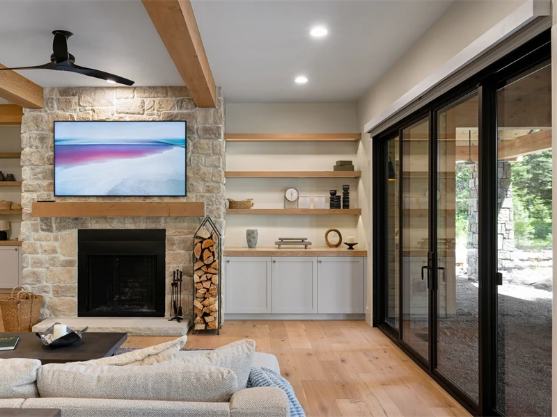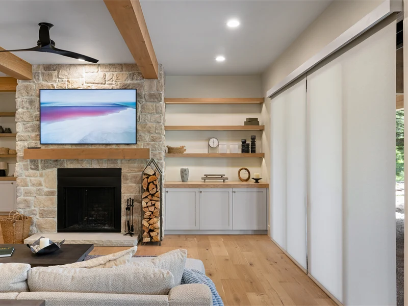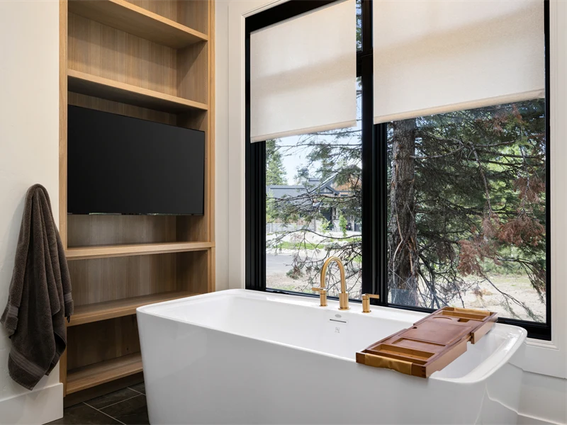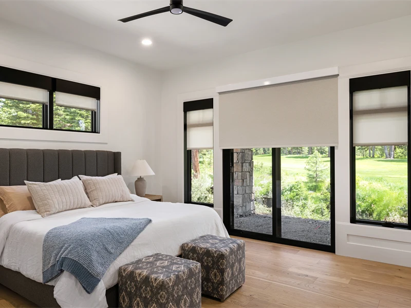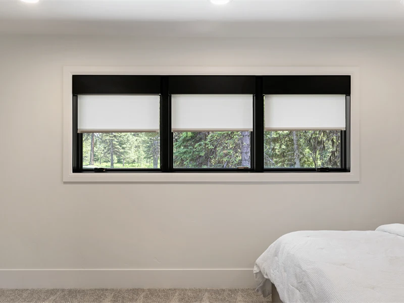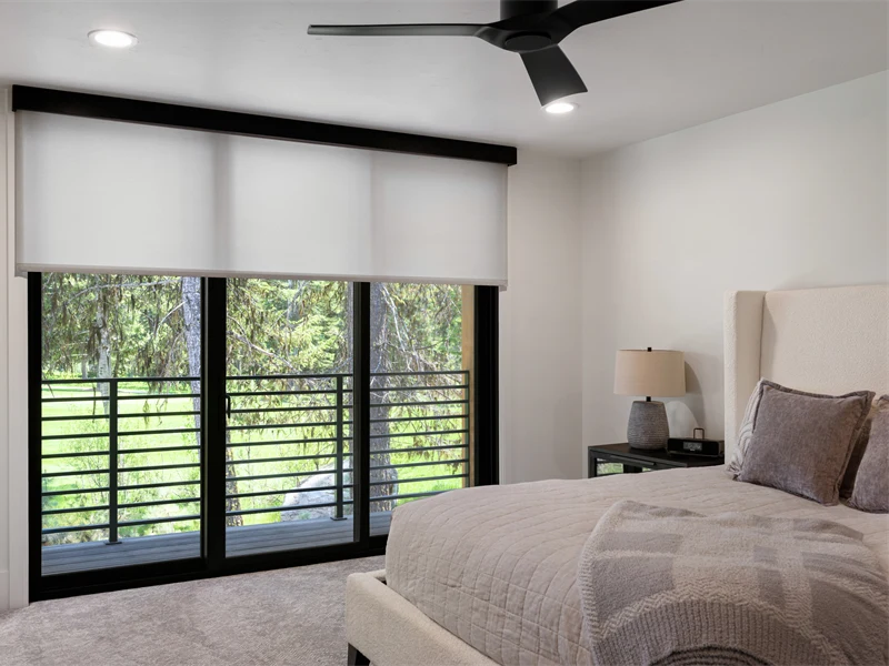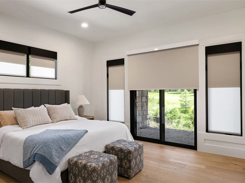 FlexShade Battery Zigbee Motorized & Dual Roller Motorized FlexShade with Phifer® SheerWeave® 7250 Oyster & Opaque 7200 0% Oyster installed in a private residence based in McCall, ID.