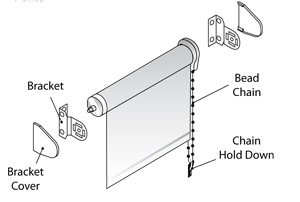 Bead chain operator for manual roller shades. Sized as needed for shade panel lifting requirement.
