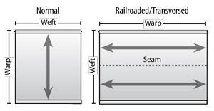 Width of window is greater than width of fabric. Pieces of fabric are rotated, seamed horizontally and trimmed to the correct width. In some cases several pieces may be seamed together to cover unusually tall windows. Not all fabrics are suitable for seaming.